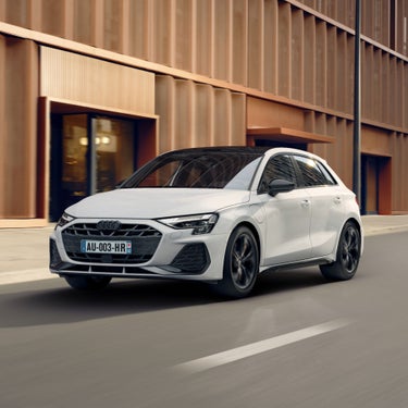 Modèle présenté : Offre de location longue durée sur 37 mois et 30000 kilomètres pour une Nouvelle Audi A3 Sportback 45 TFSI e S line options incluses dans le loyer : Teinte extérieure blanc glacier métallisé, jantes Audi sport style à 5 branches en Y, toit ouvrant panoramique en verre , 37 loyers de 590€ avec perte financière (4), contrat de maintenance aux professionnels et véhicule de remplacement (5) inclus. Offre valable du 1er avril 2025 au 31 mai 2025. Réservée à la clientèle professionnelle, hors taxis, loueurs et flottes, chez tous les distributeurs Audi présentant ce financement, sous réserve d'acceptation du dossier par Audi Business division de VOLKSWAGEN BANK GMBH - SARL de droit allemand - Capital social : € 318 279 200 - Siège social : Braunschweig (Allemagne) - RC/HRB Braunschweig : 1819 - Intermédiaire d’assurance européen : D-HNQM-UQ9MO-22 (www.orias.fr) - Succursale France : Bâtiment Ellipse, 15 avenue de la Demi-Lune - 95700 Roissy-en-France - RCS Pontoise : 451 618 904 - Administration et adresse postale : 11, avenue de Boursonne - B.P. 61 - 02601 Villers- Cotterêts Cedex. Montants exprimés TTC, prestations (4)(5) incluses.