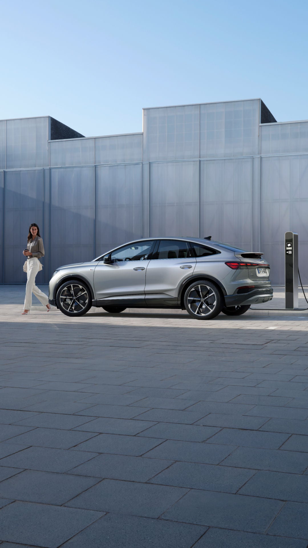 Gamme Audi Q4 Sportback e-tron : consommation en cycle mixte WLTP (kWh/100 km) : 16,0 - 17,6. Rejets de C02 en cycle mixte WLTP (g/km) : 0 en phase de roulage. Valeurs susceptibles d’évolution. Tarif au : 20/06/24.